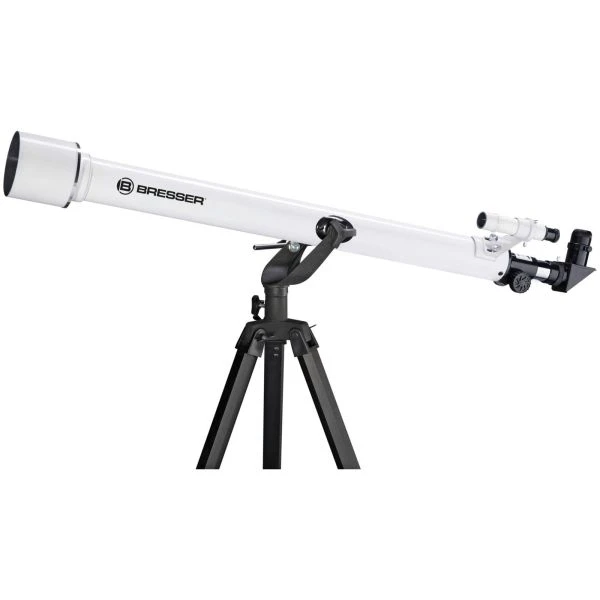 Das klassische Linsensystem mit einem Durchmesser von 60 mm und einer Brennweite von 900 mm liefert eine gute Abbildungsqualität. Die azimutale Montierung mit Höhenfeineinstellung und das stabile Aluminium-Stativ runden dieses Einsteiger-Paket perfekt ab.