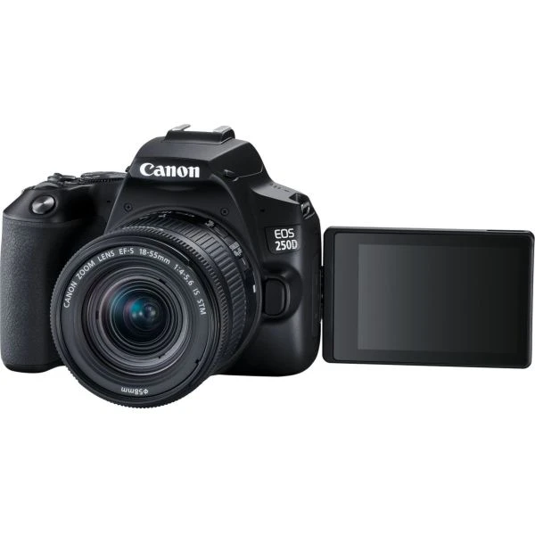 Diese extrem mobile DSLR ist die ideale Option für alle, die vom Smartphone oder einer Kompaktkamera kommend, ihre Fotografie auf ein neues Niveau bringen möchten. Die EOS 250D ist einfach zu bedienen und macht richtig Spaß. Sie bietet viele kreative Möglichkeiten, um die großen Momente des Lebens festzuhalten, und als leichteste DSLR mit dreh- und schwenkbarem Touchscreen¹ der Welt kannst du sie überallhin mitnehmen. Das im Kit enthaltene EF-S 18-55mm f/4-5.6 IS STM Zoomobjektiv ist vielseitig in der alltäglichen Fotografie für Aufnahmen von Menschen und Orten einsetzbar und ist dank des leichten Designs ideal für unterwegs. Für hochwertige Aufnahmen voller Details bietet die EOS 250D 4K-Videos, einen 24,1-Megapixel-Sensor und Dual Pixel CMOS AF. Dank WLAN und Bluetooth®² kannst du die Kamera einfach mit einem Mobilgerät verbinden und deine Aufnahmen gleich unterwegs teilen