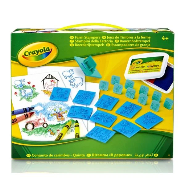 Stempel tolle Bauernhofbilder und male sie dann aus. Mit den 20 verschiedenen Stempeln kann Dein Bauernhof jedes Mal ganz anders aussehen, und Deiner Fantasie sind keine Grenzen gesetzt. Inhalt: 10 grosse Stempel, 10 kleine Stempel, Stempelgriff, Stempelkissen, 8 Wachsmalstifte, 10 Blatt weisses Papier