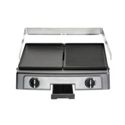 | Technische Daten | Länge: 51.20 cm Breite: 43.10 cm Höhe: 15.60 cm Gewicht: 9 kg Leistungsaufnahme: 2200 W Tischgrill Typ: Grillplatte Material Grill: Edelstahl Material Grillrost/-Platte: Aluminiumguss |