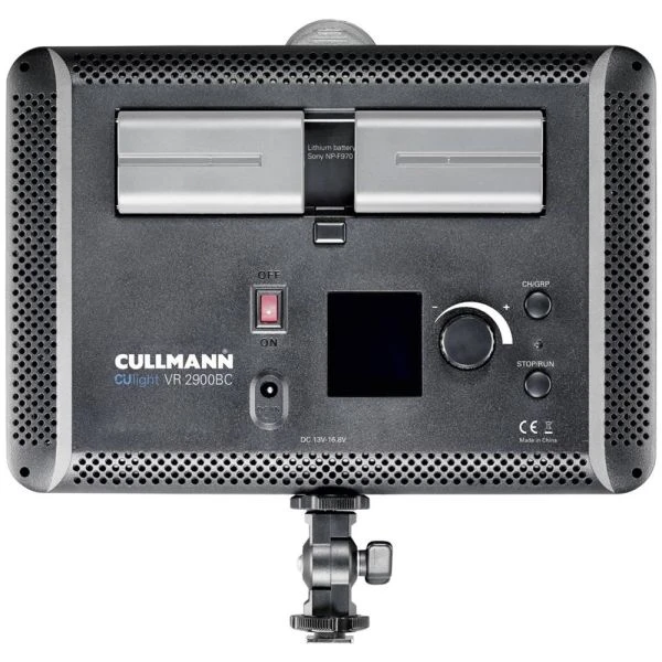 Die LED-Videoleuchte CUlight VR 2900BC ist eine leistungsstarke Bi-Colour Viodeoleuchte mit einstellbarer Farbtemperatur von 3300 Kelvin bis 5600 Kelvin und einer präzisen Leuchtstärke von 2900 Lux @ 1m. Mittels funkgesteuerter Fernbedienung lässt sich die Leuchtstärke als auch die Farbtemperatur bequem und stufenlos dimmen. Die LED-Videoleuchte CUlight VR 2900BC ist eine leistungsstarke Bi-Colour Viodeoleuchte mit einstellbarer Farbtemperatur von 3300 Kelvin bis 5600 Kelvin und einer präzisen Leuchtstärke von 2900 Lux @ 1m. Mittels funkgesteuerter Fernbedienung lässt sich die Leuchtstärke als auch die Farbtemperatur bequem und stufenlos dimmen. Für den Einsatz mehrerer CUlight VR 2900BC Videoleuchten lassen sich mittels Fernbedienung bis zu 16 verschiedene Kanäle mit sechs unterschiedlichen Gruppen programmieren und somit individuell einstellen. Als Stromversorgung dient ein Sony NP-F970 Lithium Akku oder das passende Netzteil mit 13 – 16,8 Volt. Wer jedoch bei Outdoor-Drehs eine längere Stromversorgung braucht, der kann auf die externe Stromversorgung CUlight PowerPack PP4500 zurückgreifen.