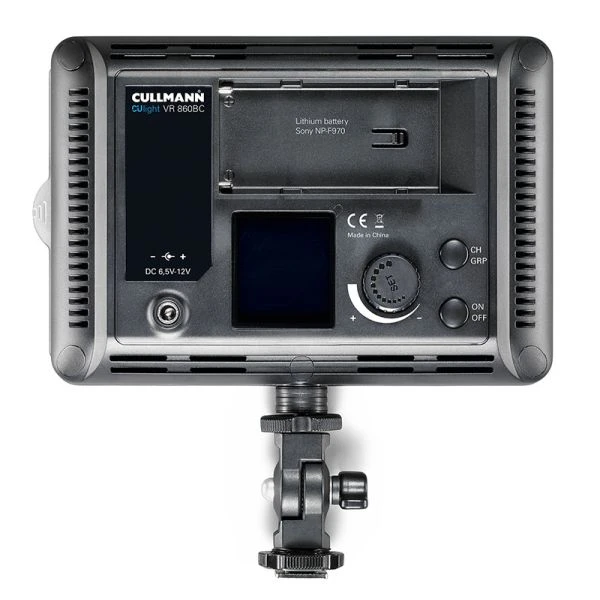 Die LED-Videoleuchte CUlight VR 860BC ist eine Bi-Colour Viodeoleuchte mit einstellbarer Farbtemperatur von 3300 Kelvin bis 5600 Kelvin und einer präzisen Leuchtstärke von 860 Lux @ 1m. Mittels funkgesteuerter Fernbedienung lässt sich die Leuchtstärke als auch die Farbtemperatur bequem und stufenlos dimmen. Für den Einsatz mehrerer CUlight VR 860BC Videoleuchten lassen sich mittels Fernbedienung bis zu 16 verschiedene Kanäle mit sechs unterschiedlichen Gruppen programmieren und somit individuell einstellen. Als Stromversorgung dient ein Sony NP-F970 Lithium Akku oder ein passendes Netzteil mit 6,5 – 12 Volt. Wer jedoch bei Outdoor-Drehs eine längere Stromversorgung braucht, der kann auf die externe Stromversorgung CUlight PowerPack PP4500 zurückgreifen.