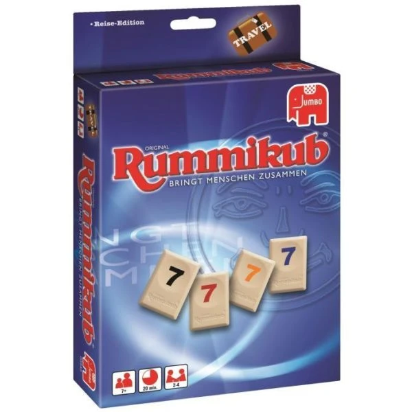 Ziel des Spiels ist es, der erste Spieler zu sein, der alle seine Spielsteine in Zahlengruppen oder -reihen abgelegt hat und die höchste Punktzahl erzielt. Das Rummikub-Reisespiel hat eine praktische kleine Aufbewahrungsbox und kleine Spielsteine. Dadurch kann man Rummikub® ganz einfach überall hin mitnehmen! Für 2-4 Spieler. Ab 8 Jahren. Spieldauer: ca. 20 Minuten.