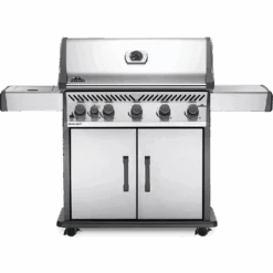 Der Propangasgrill Napoleon Rogue® 625 aus Edelstahl mit Infrarot-Seitenbrenner ist ein großer, langlebiger und pflegeleichter Gasgrill. Ausgestattet mit vier Hauptbrennern, Flammenschutzeinsätzen aus Edelstahl, Grillrosten aus Gusseisen und einem hohen Deckel, verfügt der Grill über alles, was Sie für Feinschmeckermenüs benötigen. Braten Sie wie ein Profikoch Steaks auf der integrierten Anbratstation an und nutzen Sie die zusätzliche Vorbereitungsfläche auf den Seitenablagen.