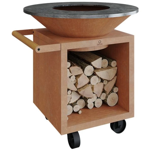 Der OFYR Classic Corten PRO verfügt über alle Eigenschaften des OFYR Classic Storage und bietet als zusätzlichen Vorteil einen Griff und Räder. Sie können Ihre Kocheinheit ganz bequemversetzen. Der Griff besteht aus Teakholz. Deshalb empfiehlt es sich, den OFYR Classic Storage Corten PRO im Haus oder unter einem Dach aufzubewahren. Er ist in einer Größe von 100 cm