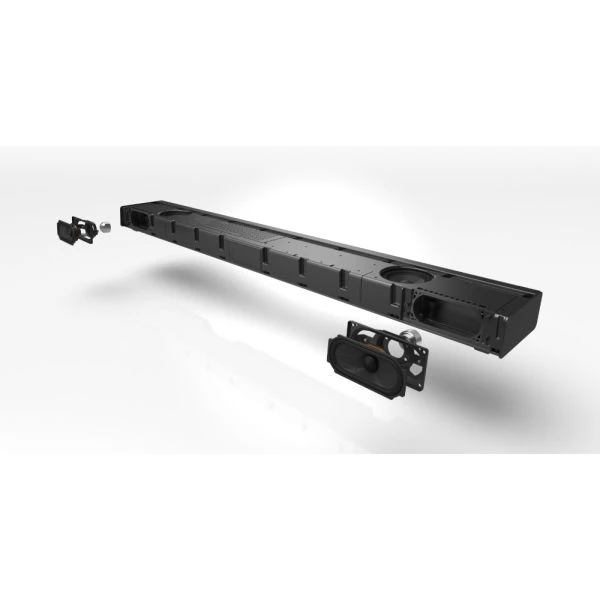 | Technische Daten | Audio/Video EingängeTOSLINK optisch Eingänge 1 ×DimensionenBreite 962 mmHöhe 56 mmLänge 120 mmGewicht 3.5 kgSchnittstellenVerbindungsmöglichkeiten HDMI, Bluetooth, ToslinkAusstattungBluetoothAudioeigenschaftenAudiokanäle 2.1Audio/Video AusgängeHDMI Ausgänge 1 × |