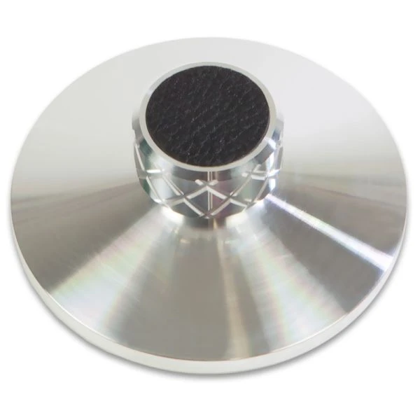 Clamp it vermeidet beide Fehler und stellt die ideale Lösung dar. Der Klemmmechanismus wird einfach auf die Mittelachse des Plattentellers gesteckt, ohne Gewichtserhöhung und damit verbundenem Rumpeln. Der Anpressdruck kann dem Wölbungsgrad der Platte entsprechend, fein eingestellt werden. Innerhalb weniger Sekunden zu montieren!. Durch seine hochwertige Ausführung ist Clamp it nicht nur akustisch sondern auch optisch ein Juwel, dass jeden Plattenspieler aufwertet.