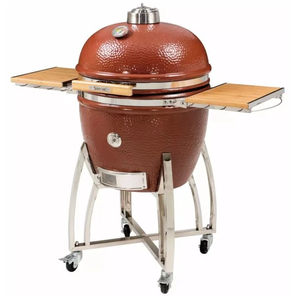 Beim Saffire-Keramikgrill schlägt das Herz eines echten «Beef Buddy» höher. Dieser Grill vereint die Funktionen eines Smoker-Grills bei kleinerer, kompakter Bauweise. Dank der dicken Keramikwände gart das Grillgut sehr schonend und die Gerichte werden zart und saftig. In nur 15 Minuten wird die benötigte Temperatur erreicht. Weil die Keramikhülle die Wärme so gut isoliert und speichert, kann selbst mit wenig Holzkohle die Temperatur im Saffi re über eine lange Zeit konstant gehalten werden, und das sogar im Winter. Durch die hohen Temperaturen im Innern des Grills müssen nach dem Grillen keine lästigen Fettreste entfernt werden – Der Saffi re ist selbstreinigend. Es muss lediglich der Grillrost aus hochwertigem Edelstahl gereinigt werden und schon ist Ihr Grill wieder einsatzbereit
