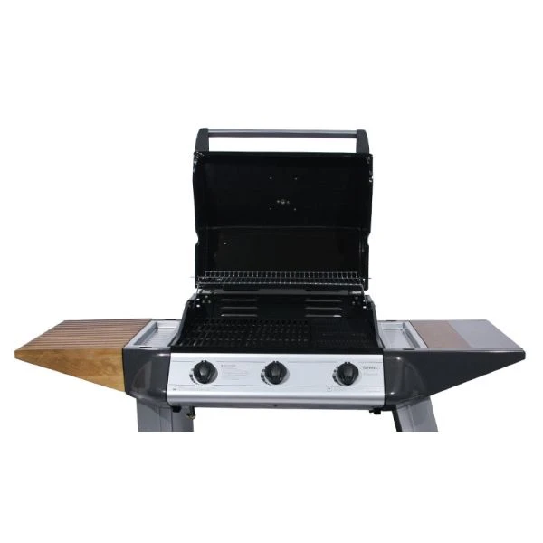 Die edle Verarbeitung lässt das Fleisch in kürzerster Zeit zart und schmackhaft werden. Der praktische Grilldeckel dient als optimaler Wärmespeicher und die Hartholztische verleihen dem Grill Eleganz. Der Grill verfügt über 2 Grillroste und einen Warmhalterost.