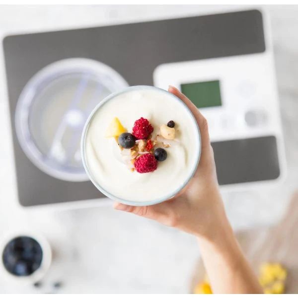 Schon nach 45 Minuten ist dein Lieblingseis zum Schlecken bereit. Joghurt kannst du nach 5-8 Stunden löffeln – egal, ob aus klassischer Kuh- oder veganer Pflanzenmilch.