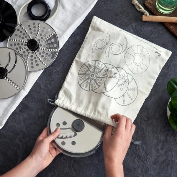 Kaia ist nicht nur die perfekte Begleitung für gesunde Ernährung. Sie kommt auch erstaunlich platzsparend daher und ist somit bestens geeignet für kompakte Küchen. Ihr Zubehör verstaust du easy im beigelegten Aufbewahrungsbeutel.